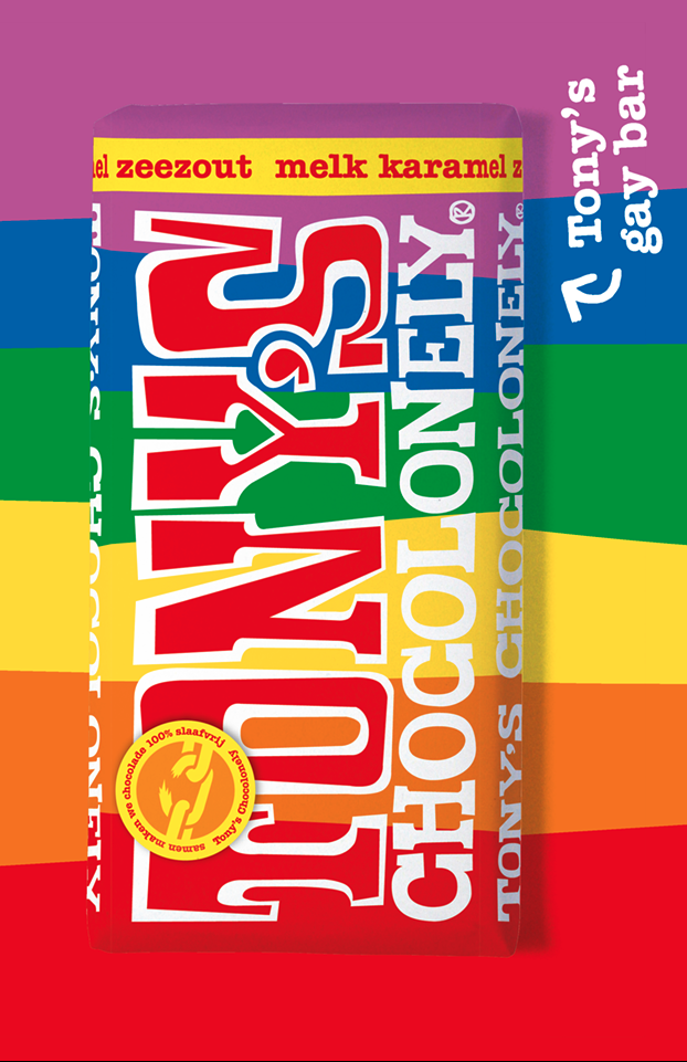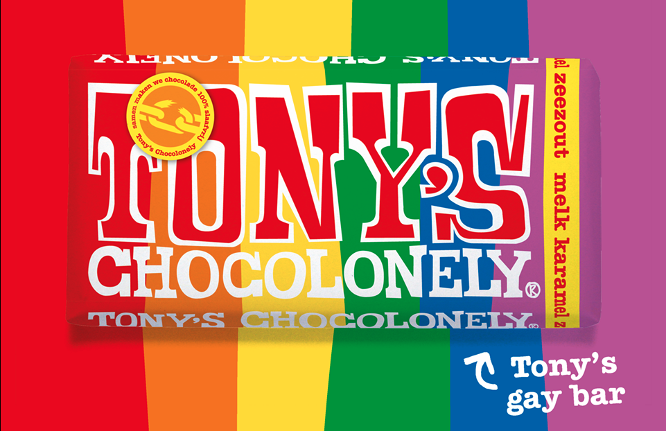 “We trekken hem voor de gelegenheid uit de kast” was de campagneslogan van de in regenboog gehulde chocoladereep van het bekende merk Tony’s Chocolonely. Ze konden met deze actie rekenen op een hoop kritiek want de reep werd alleen verkocht in de Pride-maand Juni en met de verkoop en winst kwam niets ten goede van de community. "Puur meer verkopen" werd er gezegd.